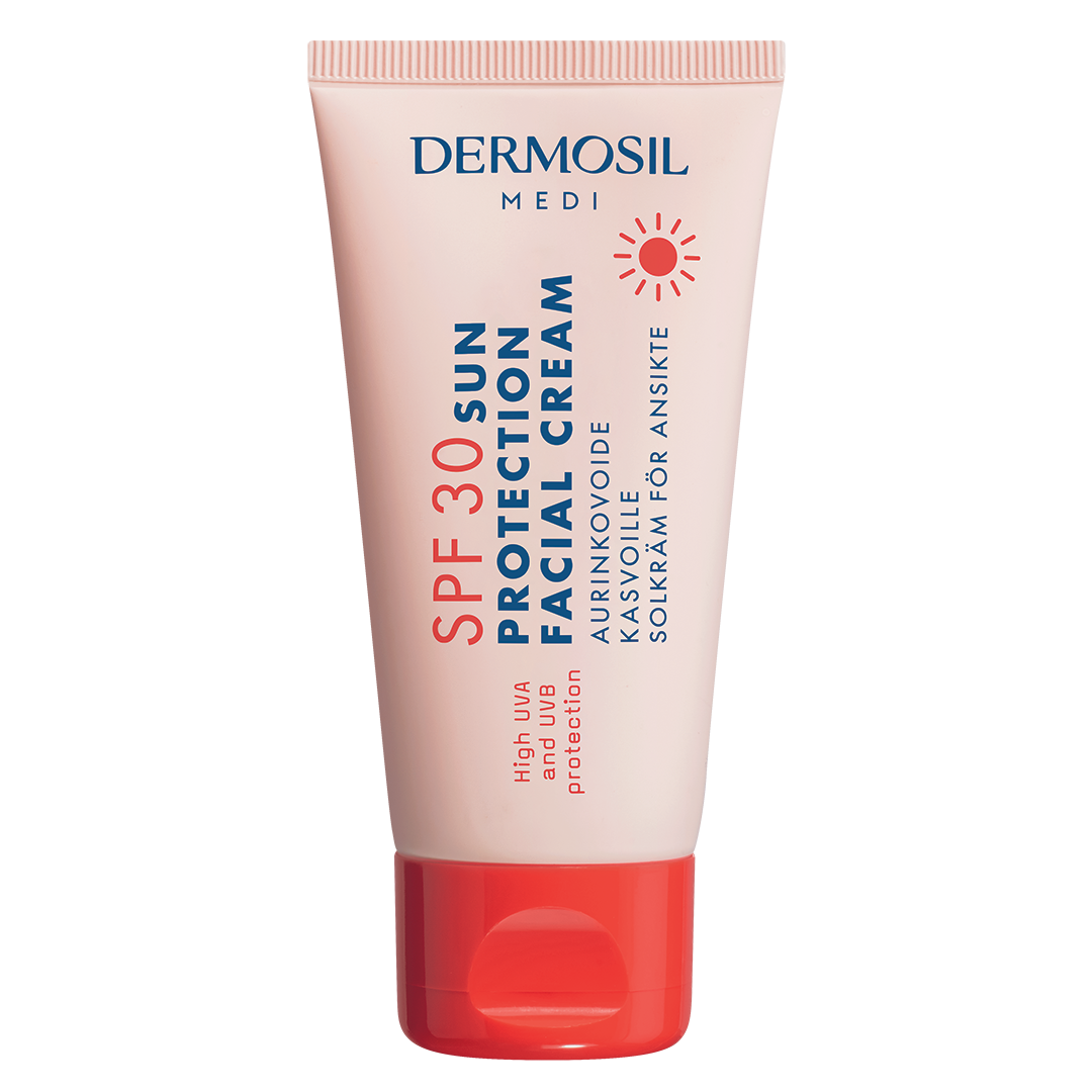 Solkräm för ansikte SPF 30 skyddar huden mot solens UVA- och UVB-strålar. Den behagligt lätta sammansättningen absorberas snabbt och efterlämnar en naturligt fräsch känsla i ansiktet. Hög solskyddsfaktor, SPF 30.