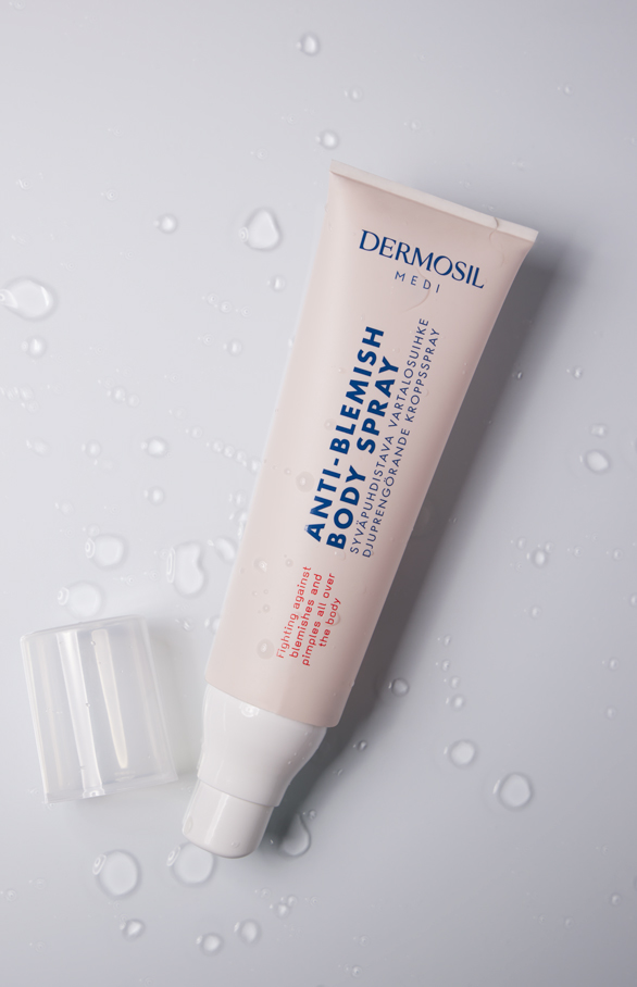 Den djuprengörande kroppssprayen hjälper till att förebygga finnar och andra orenheter på olika delar av kroppen, t.ex. på ryggen. Kroppssprayen innehåller salicylsyra, som effektivt exfolierar döda hudceller och gör plats för ny, frisk hud. Salicylsyra hjälper även till att lösa upp talg i porerna.