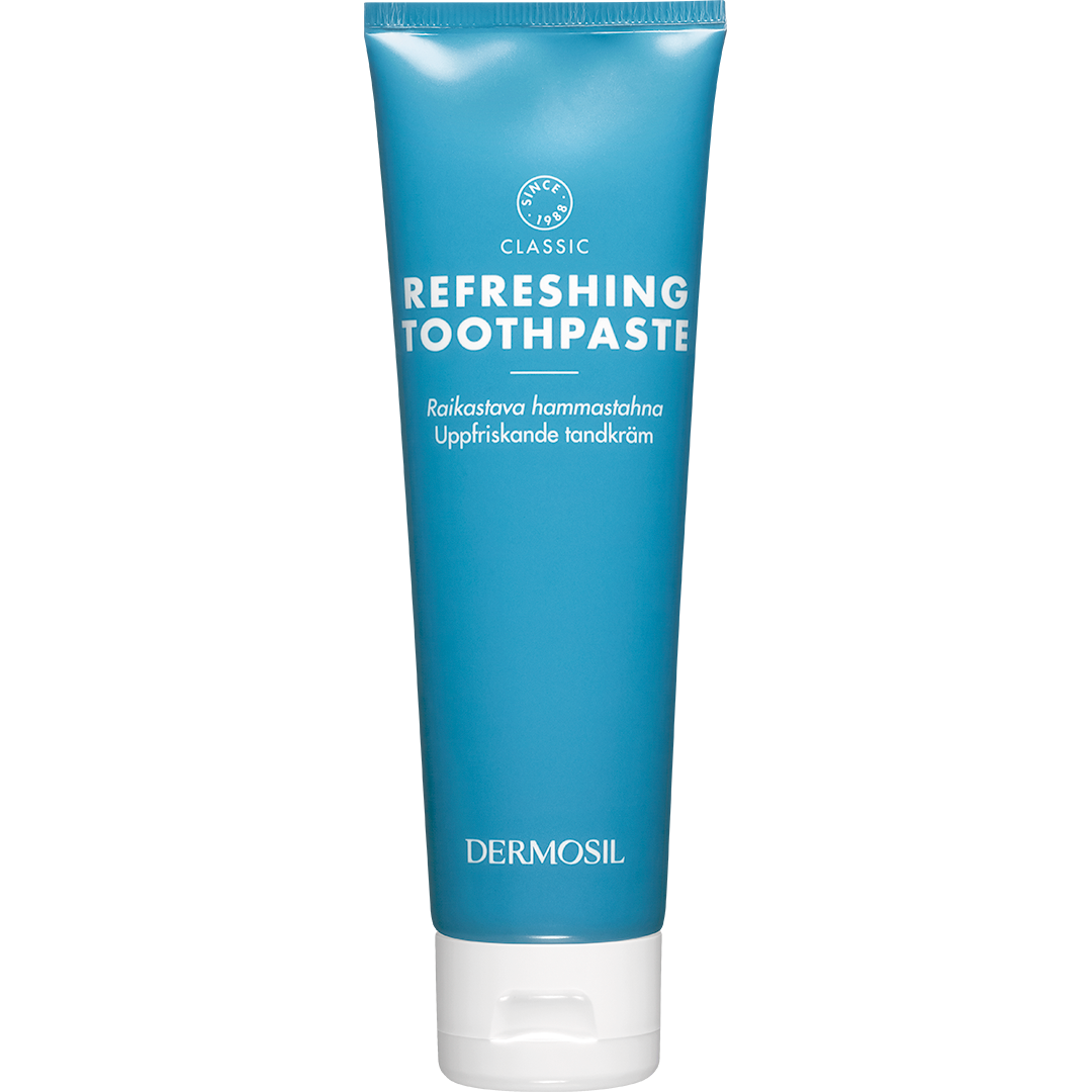 Tandkräm med mintsmak ger en fräsch känsla och hjälper till att förebygga missfärgningar på tänderna. Uppfriskande tandkräm är skonsam och sulfatfri och innehåller dessutom vårdande havreolja. Tandkrämen innehåller också fluor som hjälper till att förebygga karies.