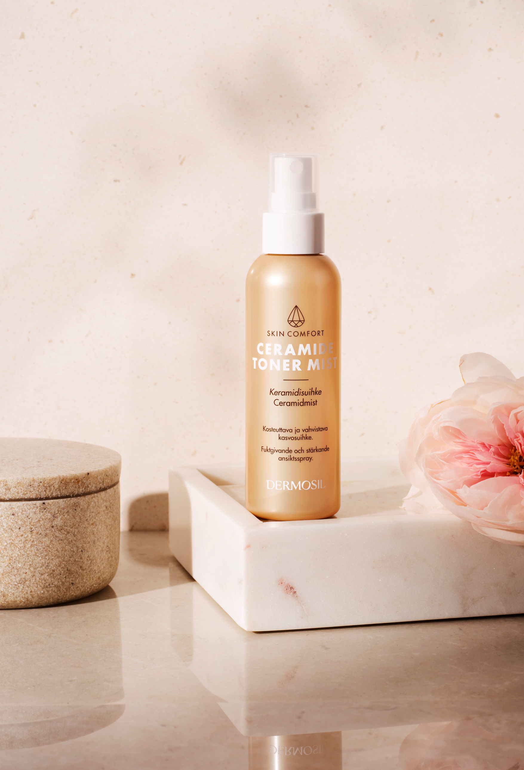 Ceramider hjälper till att hålla huden återfuktad och skyddar mot yttre stressfaktorer, såsom temperaturväxlingar, sol och luftföroreningar. Med åldern sjunker hudens naturliga ceramidhalt, vilket gör att huden blir mer utsatt för uttorkning och belastning. Ceramidmist innehåller rikligt med ceramider som kompletterar hudens egen skyddsmekanism.