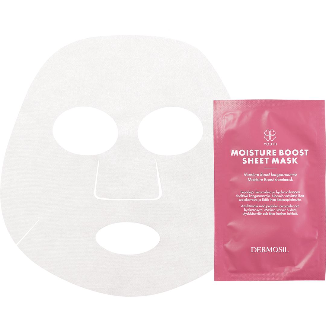 Vill du omedelbat få en pigg, återfuktad och strålande hy? Sheetmasken är avsedd för engångsbruk och den ger snabb och intensiv hudvård. Masken innehåller peptider, ceramider och hyaluronsyra som stärker hudbarriären och ger huden rikligt med fukt. Sheetmaskens syfte är att hindra fukten från att försvinna från huden och på så sätt får de aktiva ingredienserna möjlighet till att verka på djupet.
