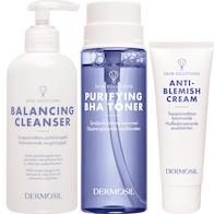 Du får det bästa resultatet genom att använda Balanserande rengöringsgel tillsammans med Skin Solutions-seriens Djuprengörande ansiktsvatten och Hudbalanserande ansiktskräm. De här tre produkterna bildar tillsammans en helhet som hjälper till att förbättra hudens välbefinnande och utseende. Produkterna lämpar sig för fet och oren hy med tendens till acne och pormaskar. Produkterna kan användas av alla åldersgrupper. Fet hy, acne och pormaskar uppfattas ofta som tonåringars hudproblem men i verkligheten kan alla åldersgrupper lida av dessa, beroende på exempelvis förändringar i hormonaktiviteten.
