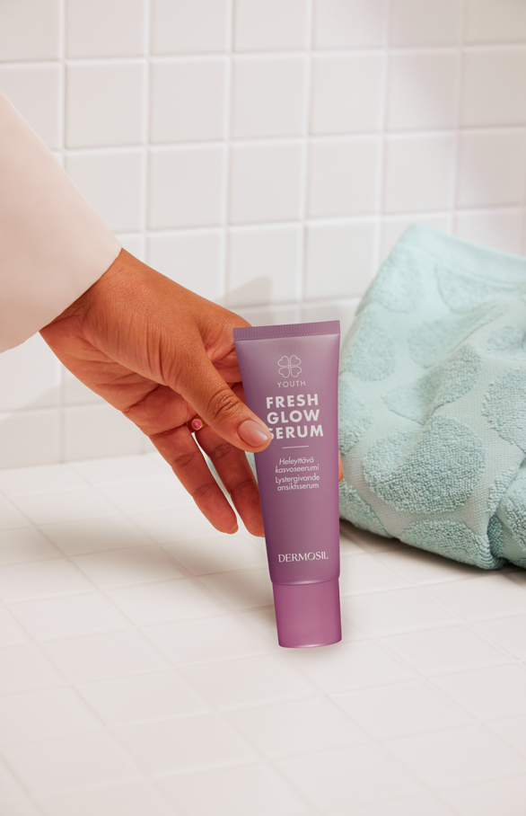 Använd serumet som sådant eller tillsammans med en ansiktskräm, som Youth Lugnande gelkräm. Serumet kan appliceras antingen under eller ovanpå ansiktskrämen.