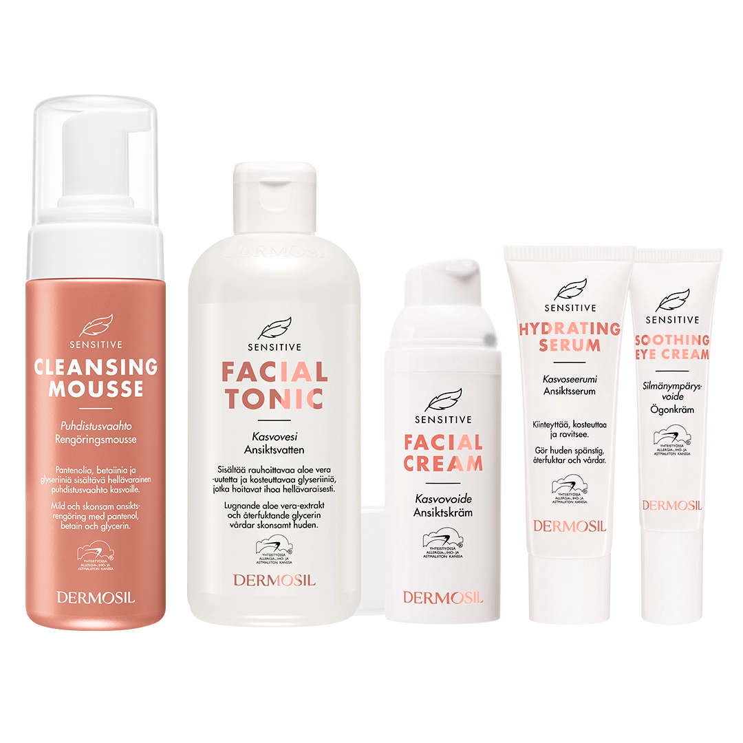 Hudvård för extra känslig hud! Våra skonsamma Sensitive-produkter är allergimärkta och parfymfria och passar även mycket torr eller atopisk hud. En bra bas i hudvårdsrutinen som tryggt kan användas av hela familjen, också spädbarn.