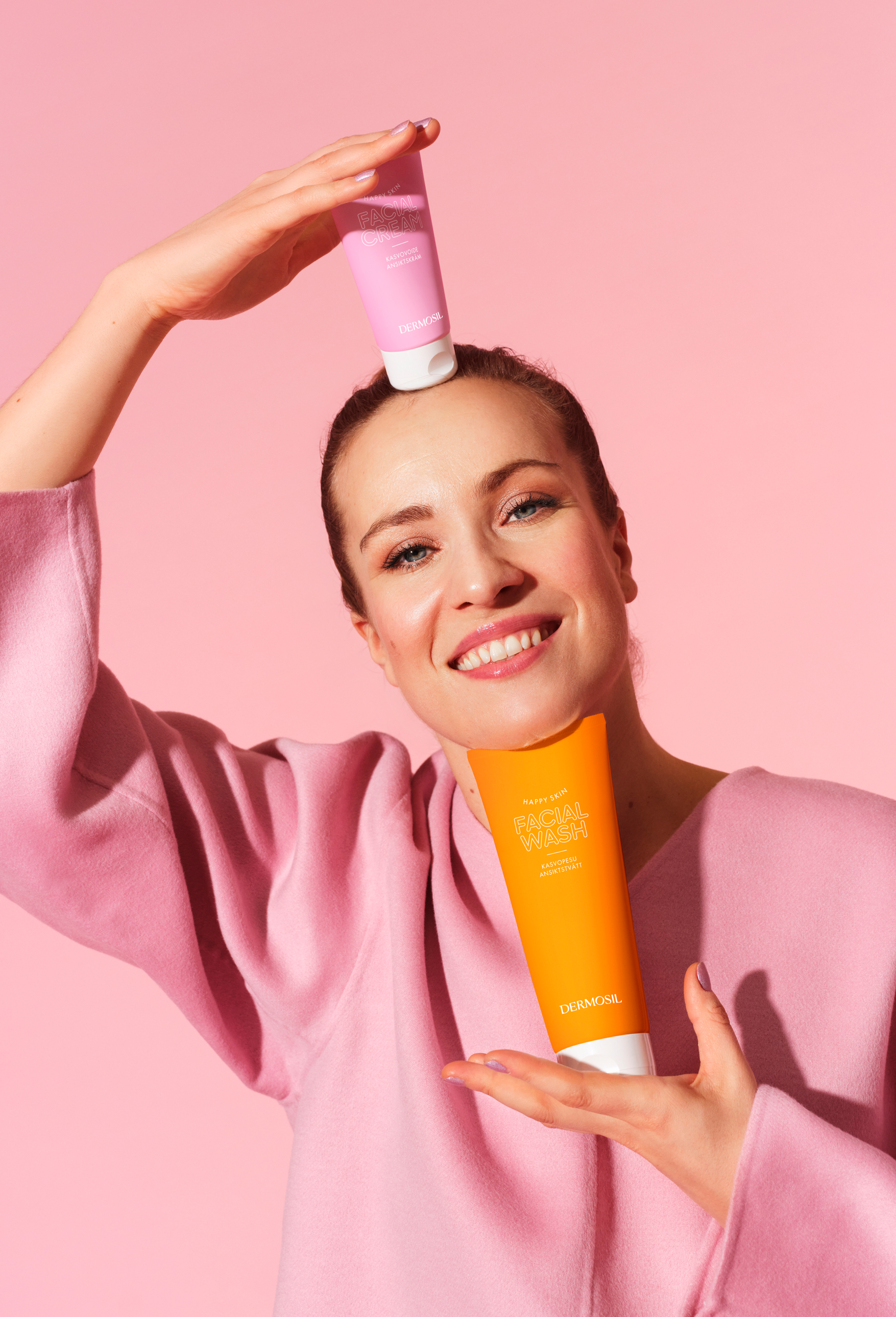 Happy Skin Ansiktstvätt avlägsnar orenheter och makeup från huden. Glycerin, urea och karragenan vårdar olika hudtyper med sin fuktgivande sammansättning. Den aningen gelaktiga produkten är enkel att massera in i huden och skölja bort.