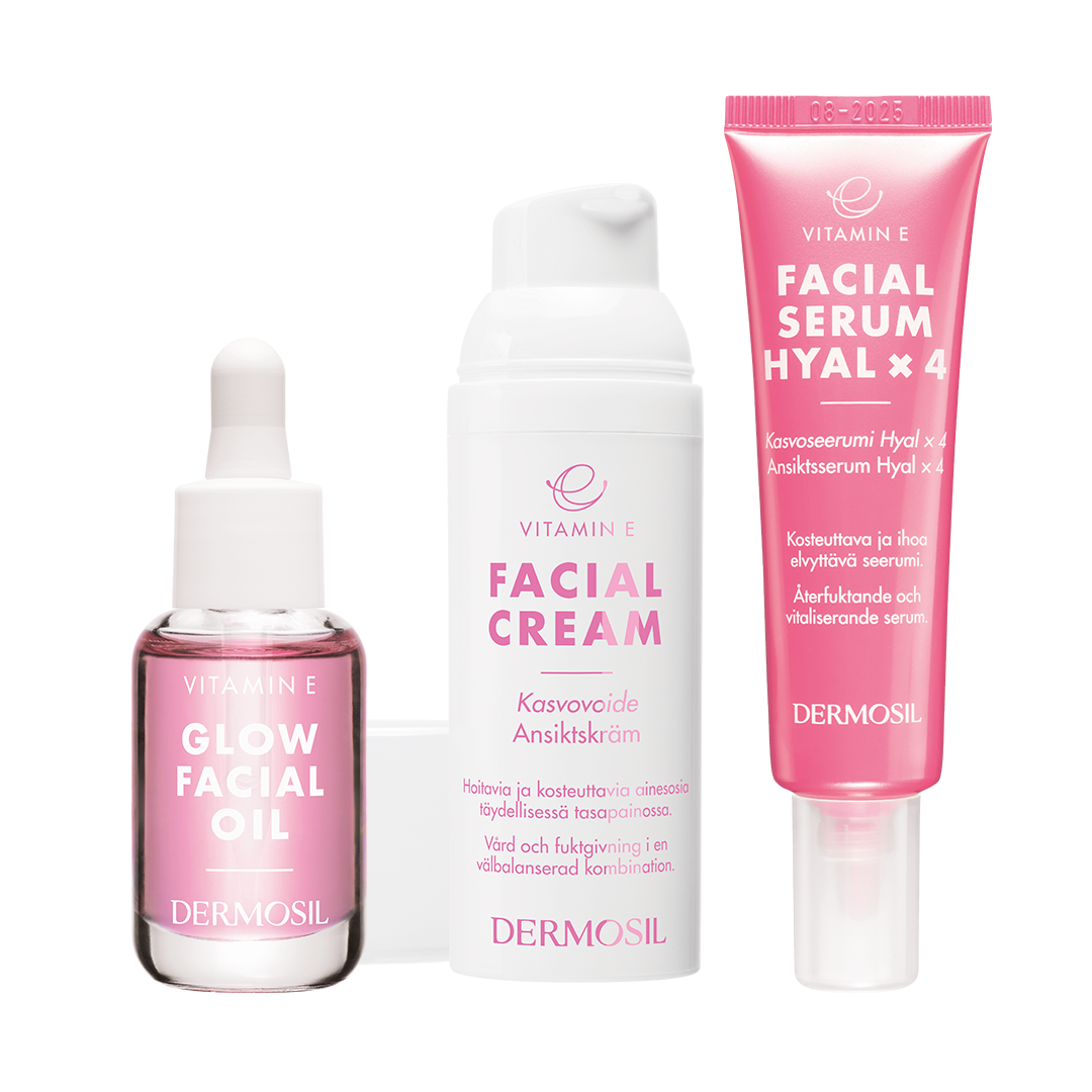 - Effektivt återfuktande hyaluronsyraserum och E-vitamin ansiktskräm