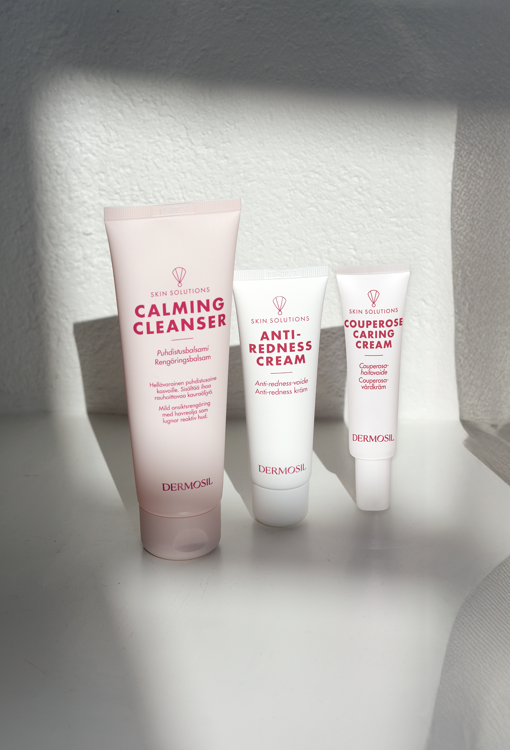 Tre skonsamma, men samtidigt mycket effektiva och välfungerande produkter för att vårda hud som rodnar samt couperosa-hud.