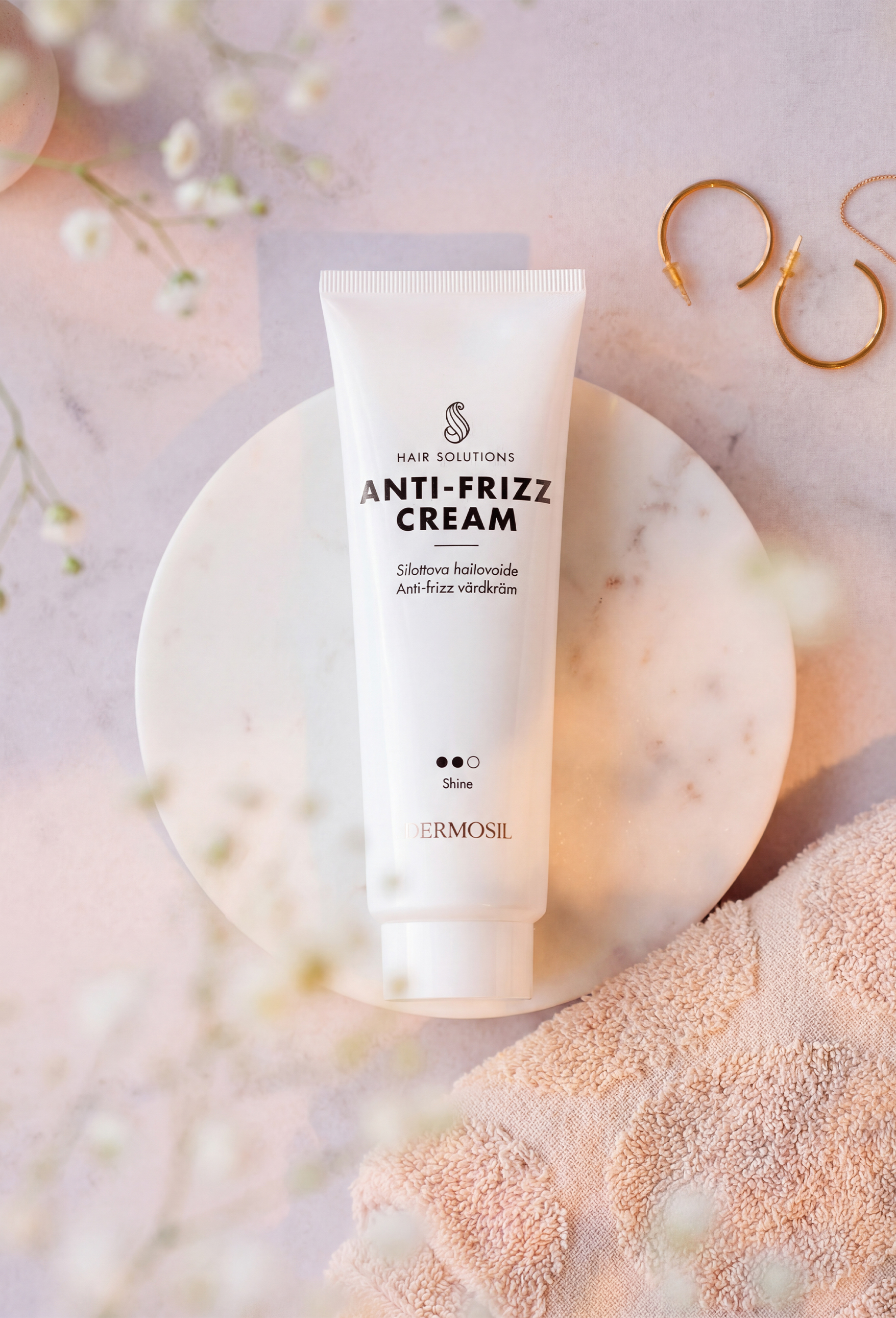 Anti-frizz vårdkrämen passar alla hårtyper och är en fantastisk produkt i synnerhet för hår som lätt blir torrt och frissigt. Den är också väldigt bra för lockigt hår, eftersom den får lockarna att hållas vackra och lägga sig snyggt.