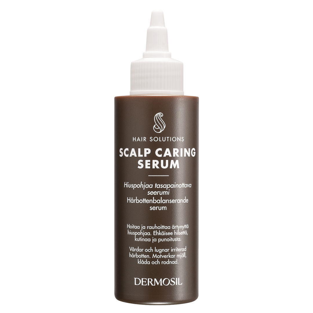 Dermosil Hårbottenbalanserande serum lugnar och återfuktar hårbotten samtidigt som uppkomsten av mjäll motverkas.
