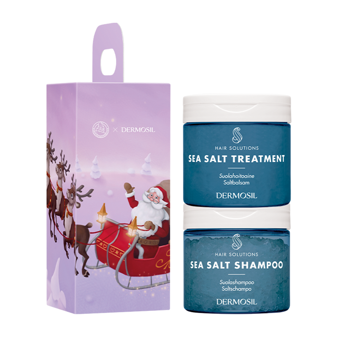 Julgåva Havsbris innehåller våra älskade djuprengörande hårvårdsprodukter, Saltschampo och Saltbalsam. De mineralrika havssaltsprodukterna får håret att kännas rent och fräscht länge. Havssaltet i produkterna innehåller rikligt med mineraler, såsom magnesium, natrium och kalium, som lugnar hårbotten och balanserar talgutsöndringen samtidigt som mineralerna vårdar håret och hårbotten.