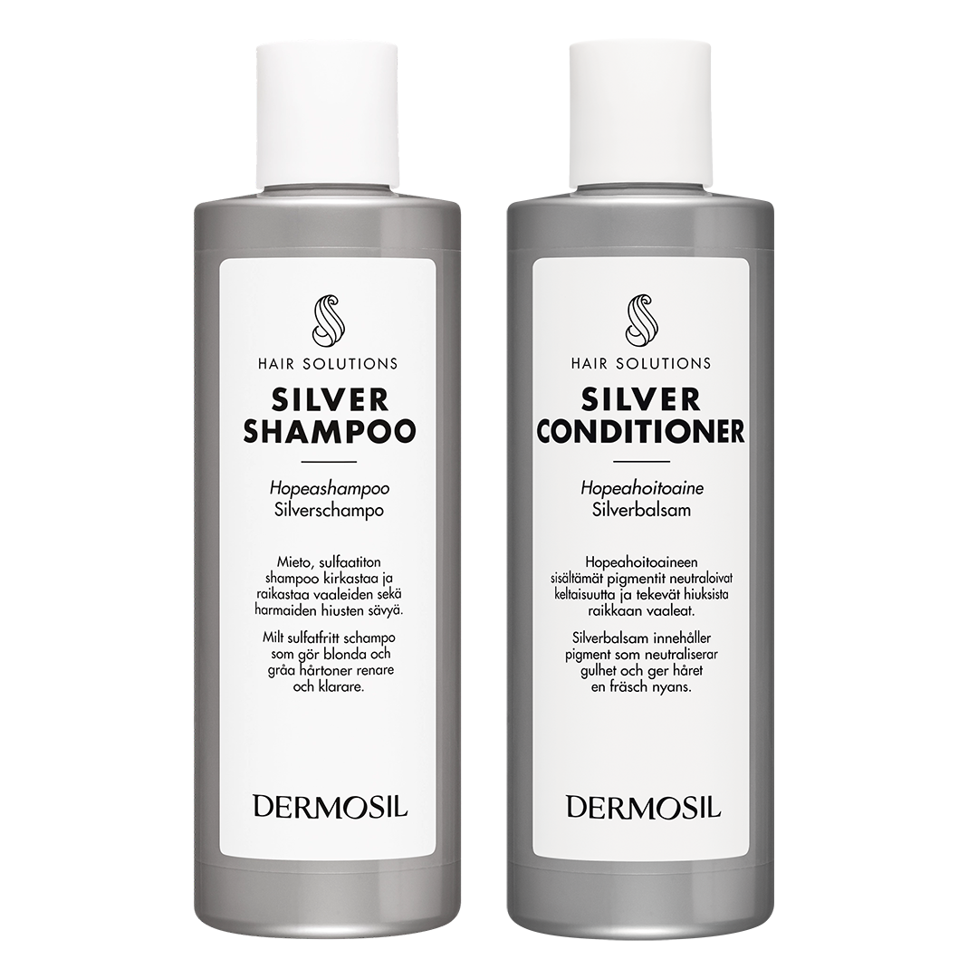 Dessa högklassiga silverprodukter gör blonda och gråa hårtoner renare och klarare. Både Silverschampot och Silverbalsamet innehåller pigment som effektivt neutraliserar gulhet och ger håret en fräsch ljus nyans. De veganska produkterna har en oemotståndligt fräsch citrusdoft med inslag av persika och är sulfat- och silikonfria.