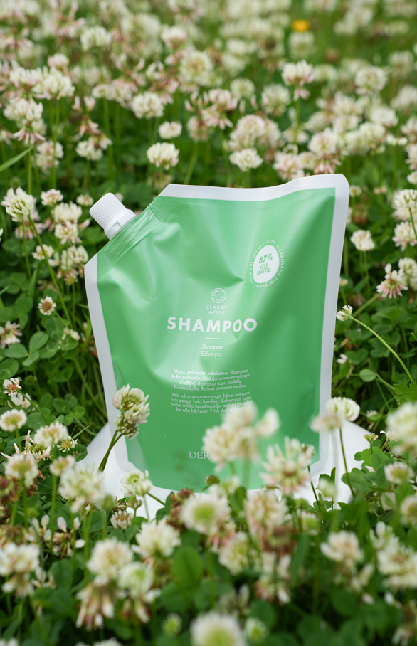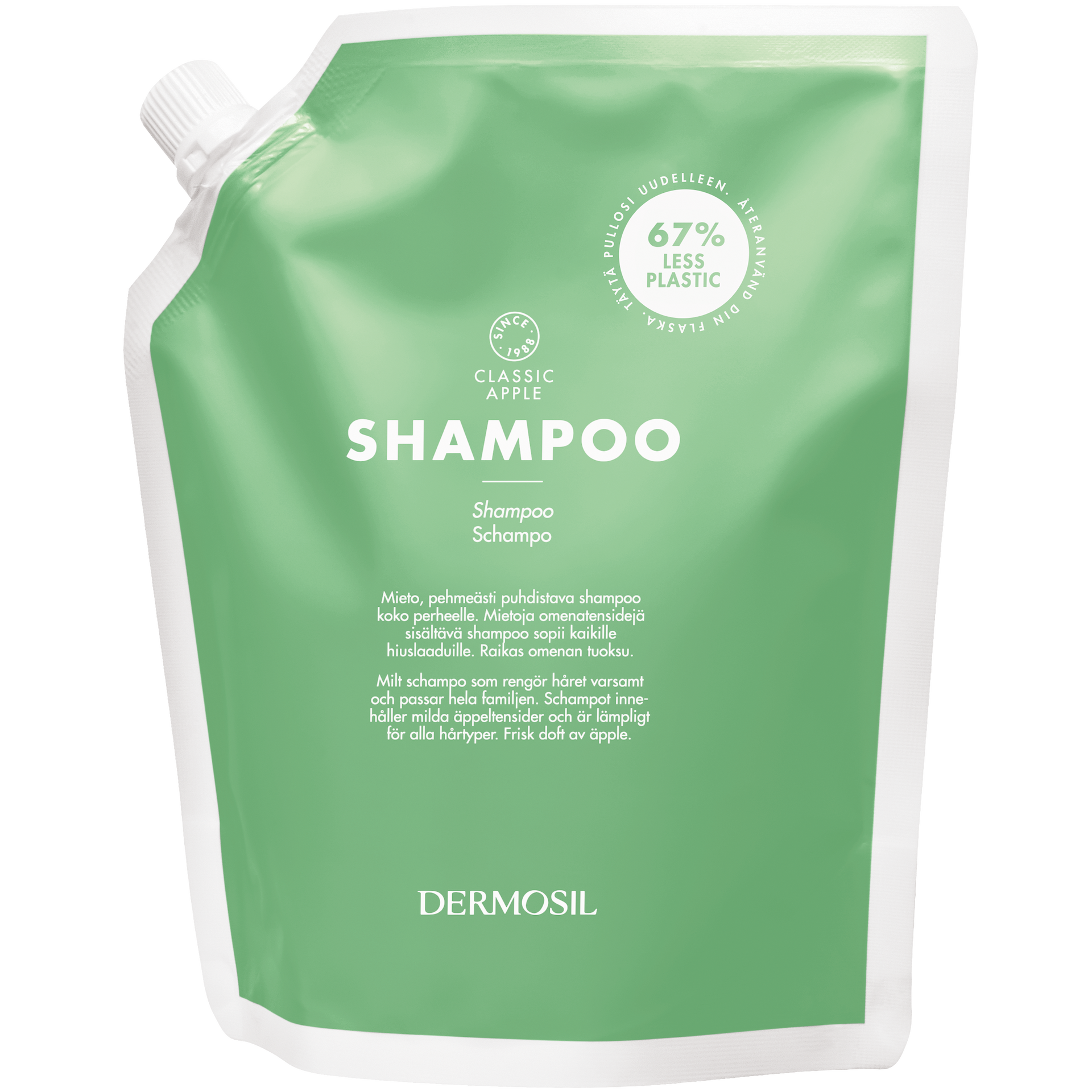 Classic-seriens Apple Schampo har en fräsch doft som gläder både stora och små. Det milda schampot lämpar sig för flera olika hårtyper.
