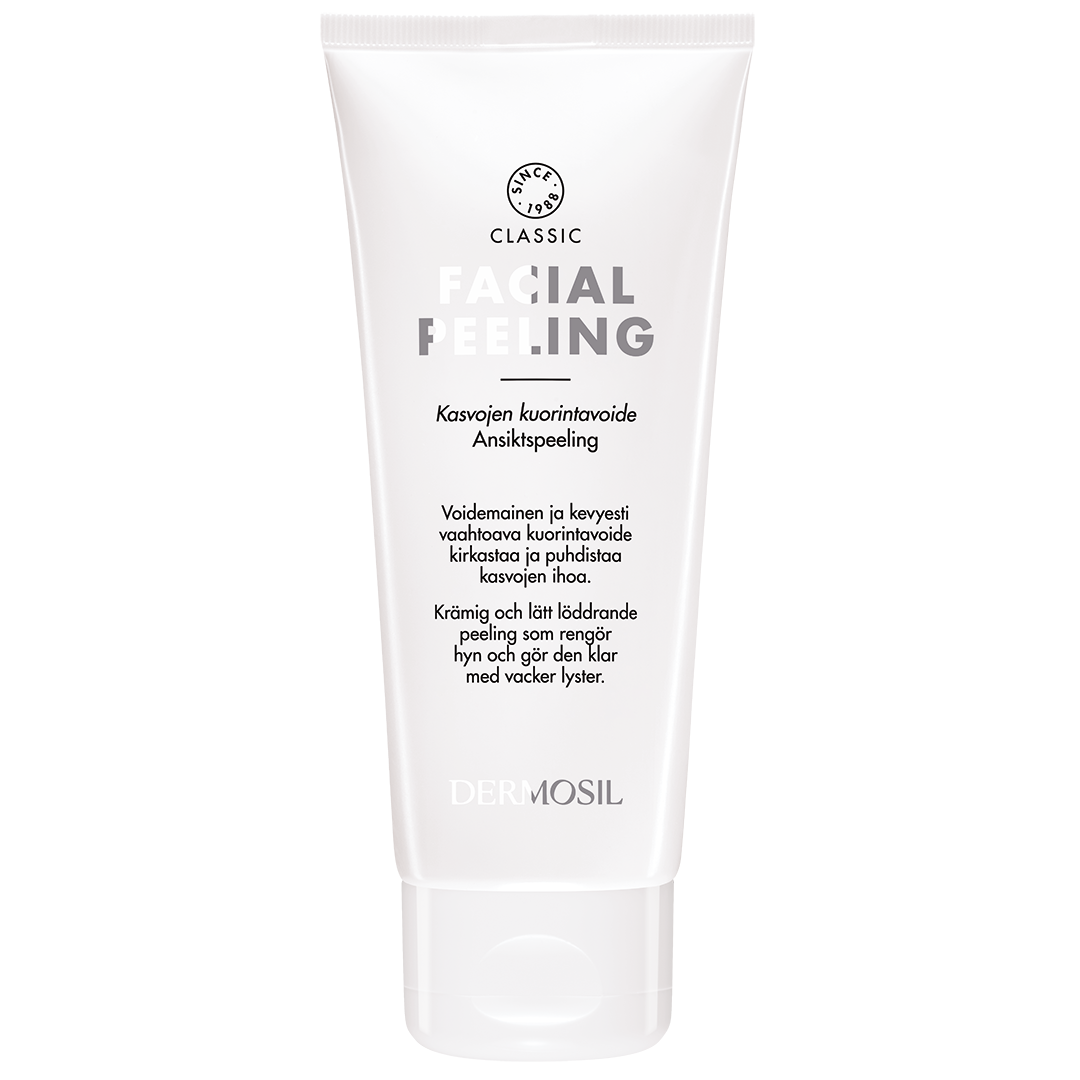 Dermosil Ansiktspeeling rengör effektivt men är ändå skonsam för huden. Doften är den fräscha Classic doften.