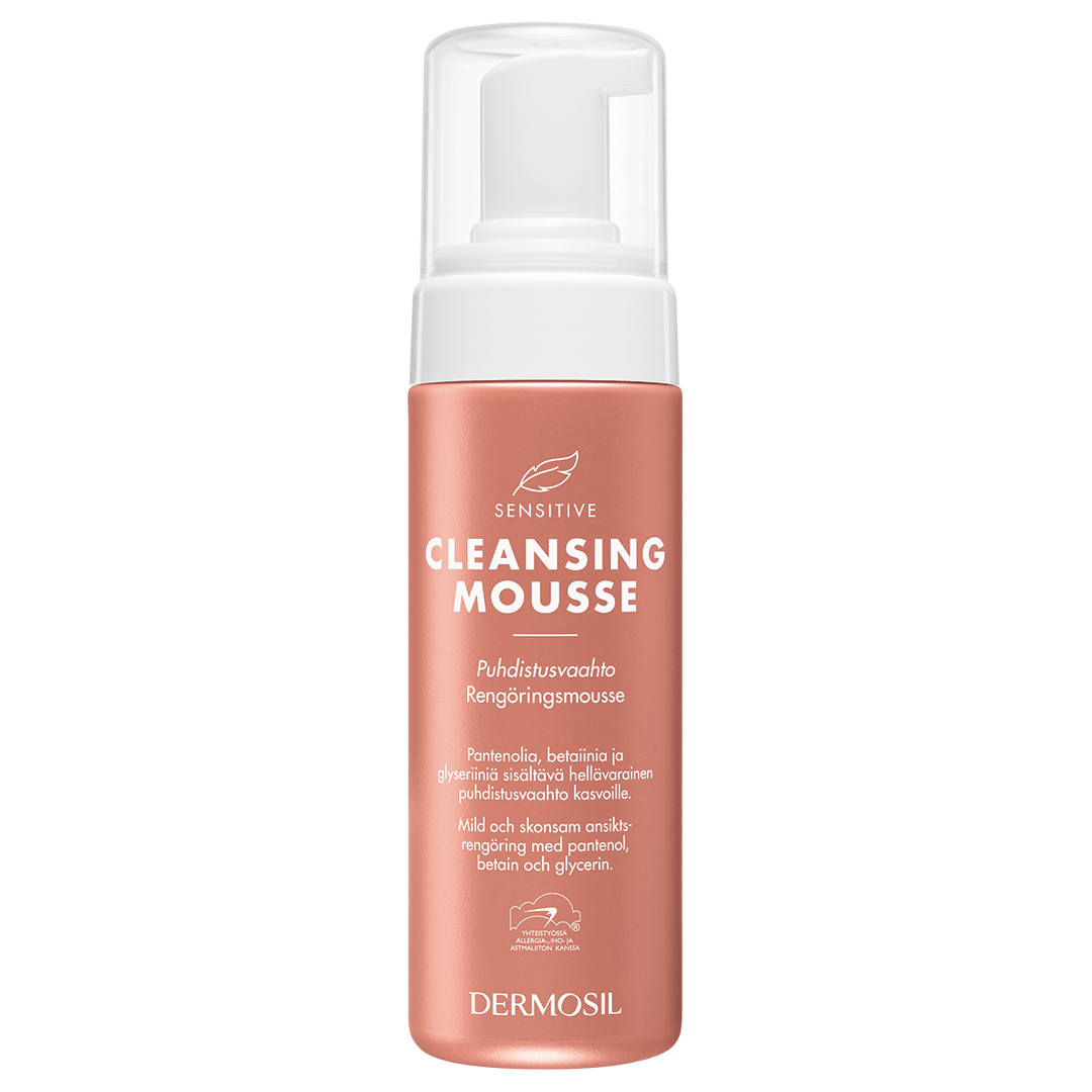 Sensitive Rengöringsmousse är speciellt utvecklad för känslig hy. Kan användas både för ansiktet och för hela kroppen. Dess milda egenskaper gör att den passar för dagligt bruk och även för små barn och personer med atopisk hud.