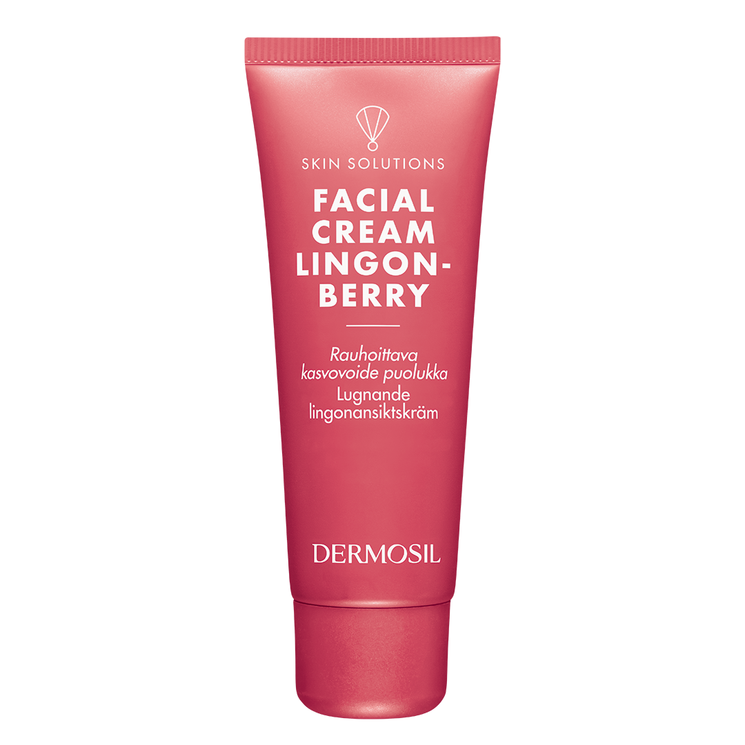 Ansiktskräm med lingonextrakt för känslig hud. Lugnar rodnad, återfuktar och stärker hudens naturliga skyddsbarriär.