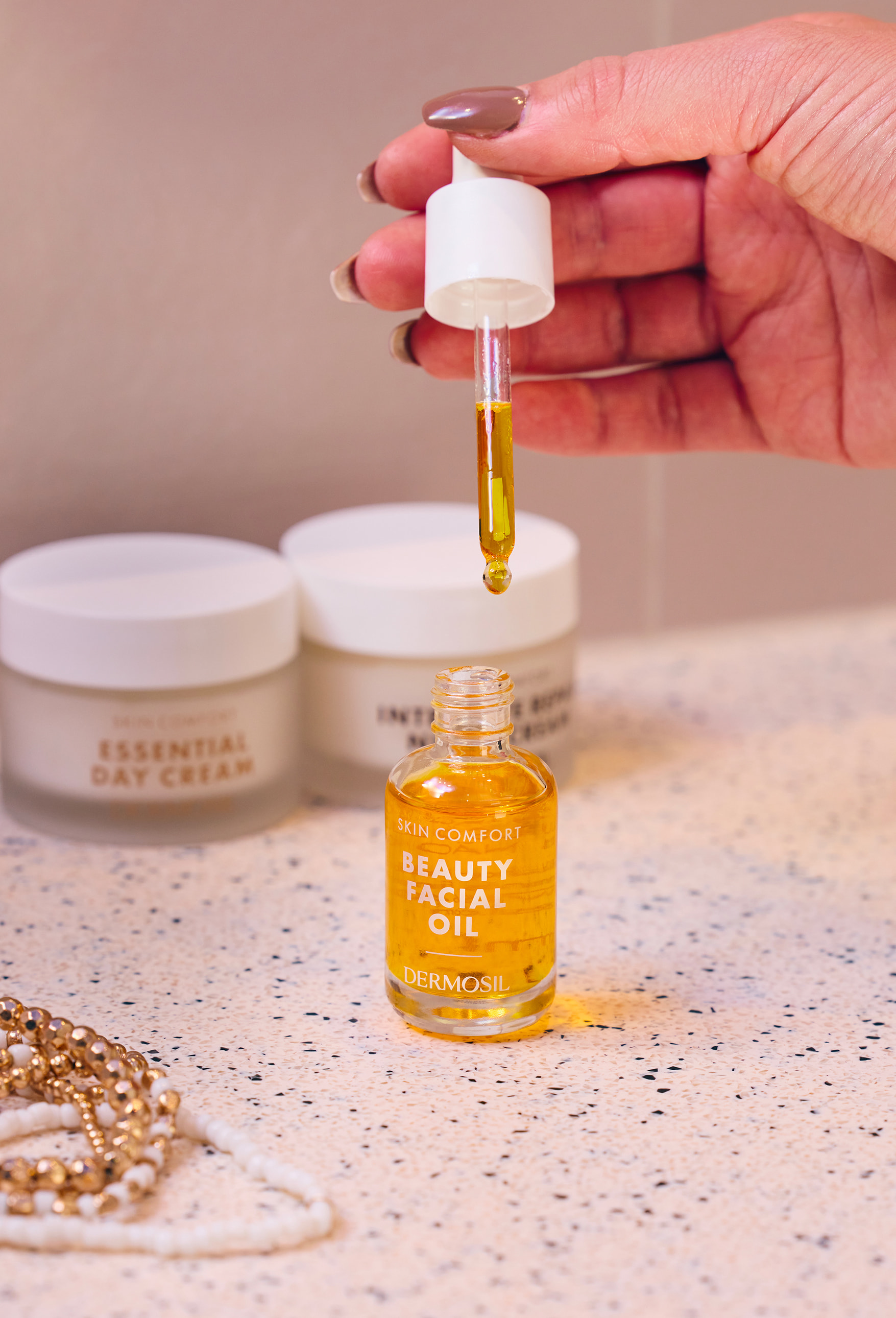”Det stämmer inte alls att ansiktsoljor gör huden fet. Ansiktsolja är en utmärkt hudvårdsprodukt som främjar hudens välbefinnande och lyster”, berättar Marjo.