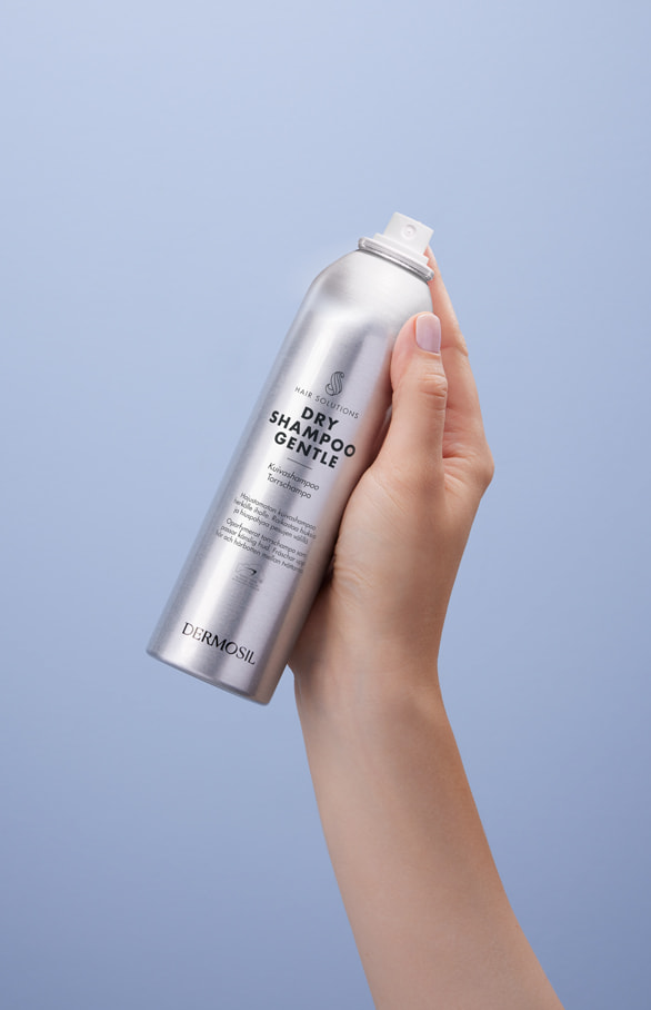 - Spraya Dermosils torrschampo alldeles i hårrötterna för att minska på fettet i håret.