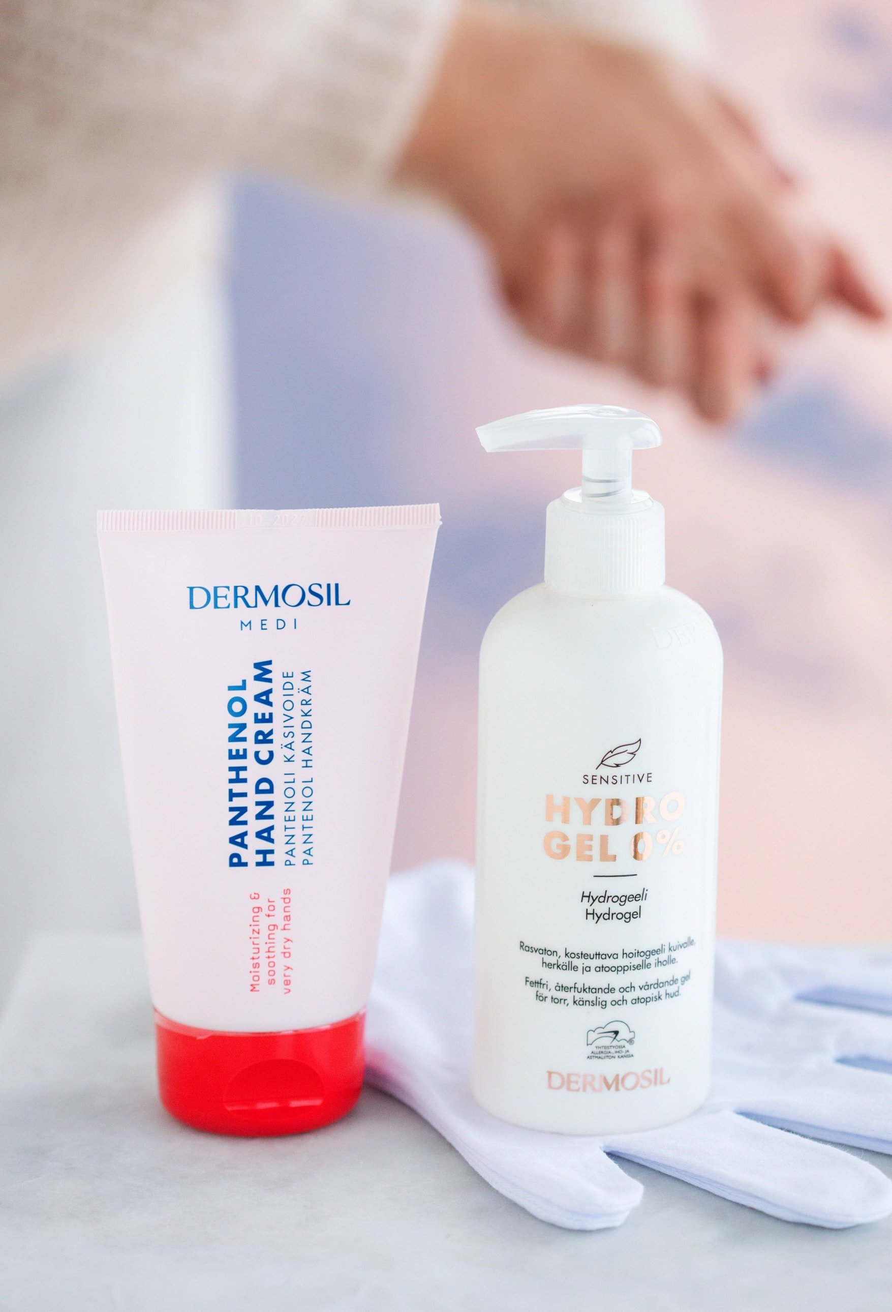 Sanni som driver bloggen Karkkipäivä är en kosmetikälskare vars atopiska hud ofta får symptom under vintern. Att endast återfukta huden med en kräm räckte inte, vilket fick Sanni att börja med en trick: då man applicerar rikligt med vattenbaserad fukt under krämen börjar huden må bättre. Tack vare följande recept har Sanni fått bukt med torra, fnasiga och spruckna händer. Utforska också våra ansiktsvårdsprodukter och krämer för atopisk hud.