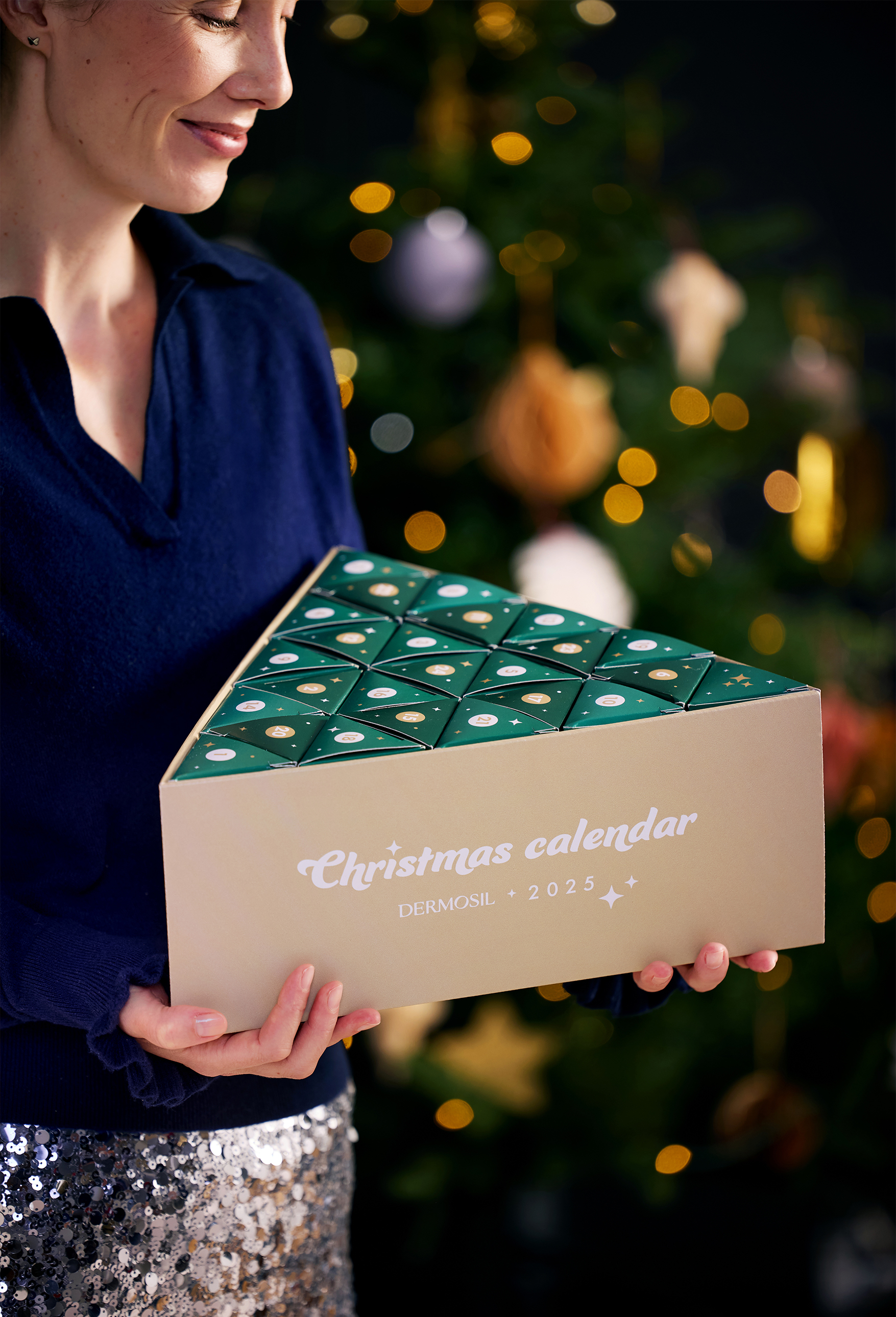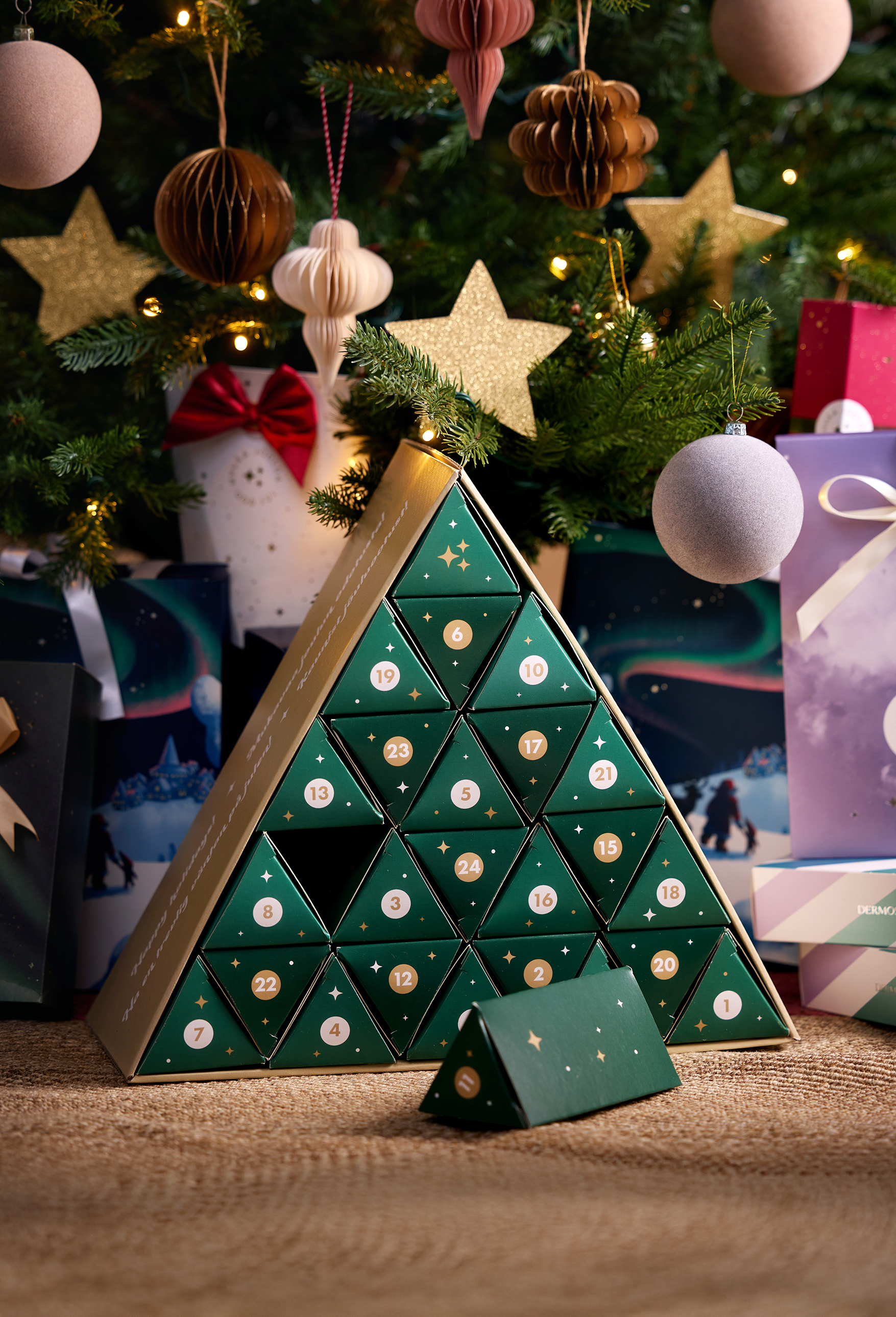 Dermosil Julkalender 2025 har formen av en ståtlig julgran som drar blickarna till sig. Klarar du av att hålla dig till december med att öppna första luckan?