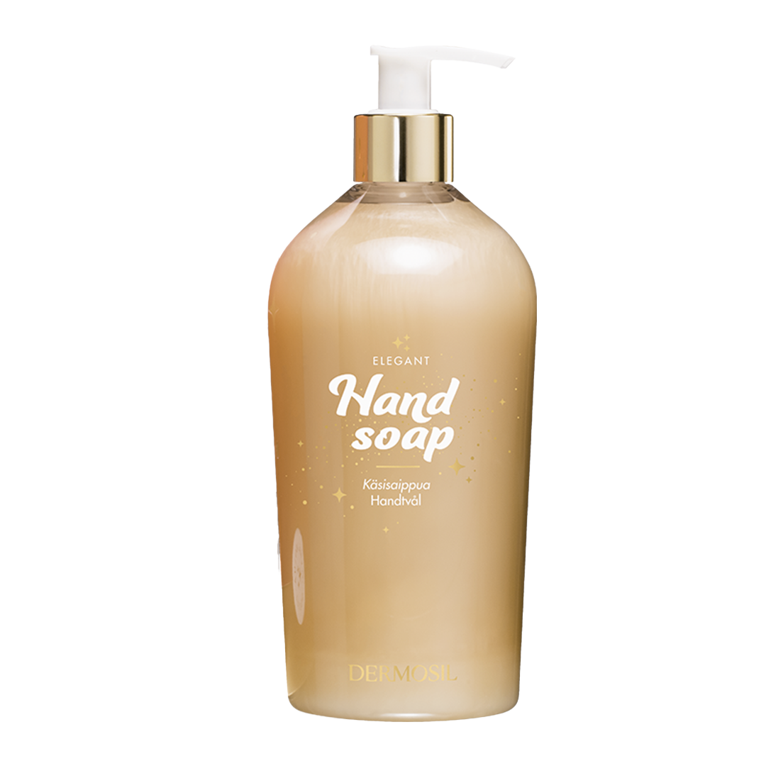 Elegant Handtvål är en festlig pärlemorskimrande handtvål i en läcker gräddkolafärgad nyans. Tvålen innehåller glycerin, betain och björksav, vilka tillsammans stöder hudens välbefinnande och får händerna att kännas behagligt återfuktade efter tvätt.