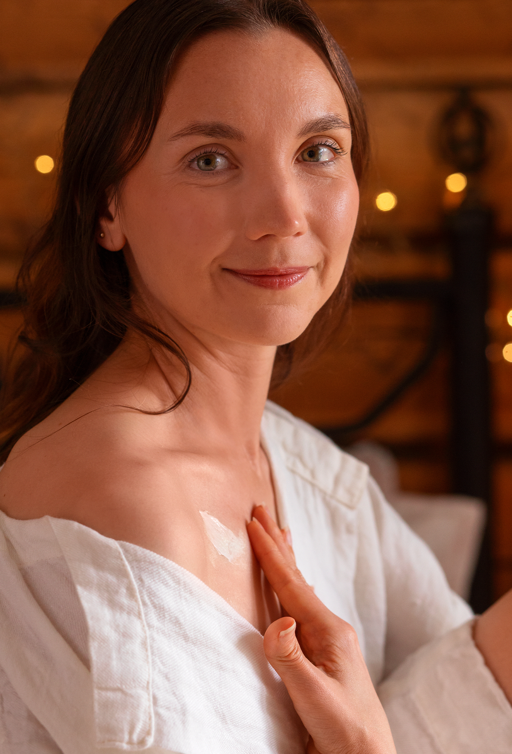 Kroppskräm Soft Shimmer är en underbar, fuktgivande kräm för vintertorr hud. Den sammetsmjuka och lyxiga kroppskrämen innehåller ljusreflekterande pigment som omedelbart får huden att se jämn ut och ger vacker lyster. Med hjälp av krämen framhäver du till exempel dekolletaget, axlarna och armarna på ett vackert sätt. Den högklassiga krämen innehåller rikligt med sheasmör som vårdar och mjukgör huden effektivt medan glycerin återfuktar huden. Krämen har en lätt fräsch doft av röda bär.