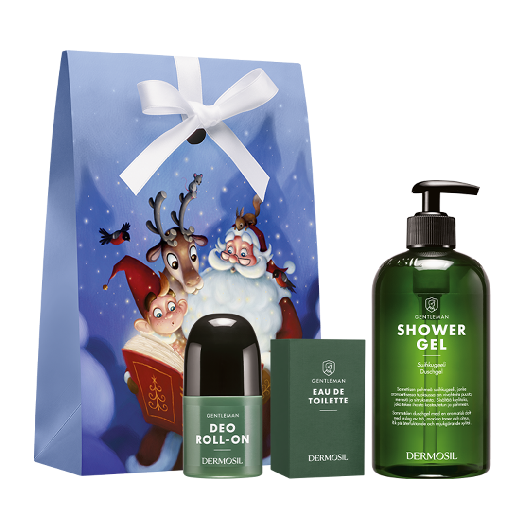 Julgåva Gentleman är den perfekta gåvan till alla män. Produkterna – Gentleman duschgel, Deo Roll-on och Eau de Toilette – har en aromatisk doft där skog och hav möts.