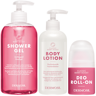 Till Classic-seriens läckra och fräscha Berry Boost-produkter hör också Berry Boost Duschgel och Berry Boost Hudvårdslotion.