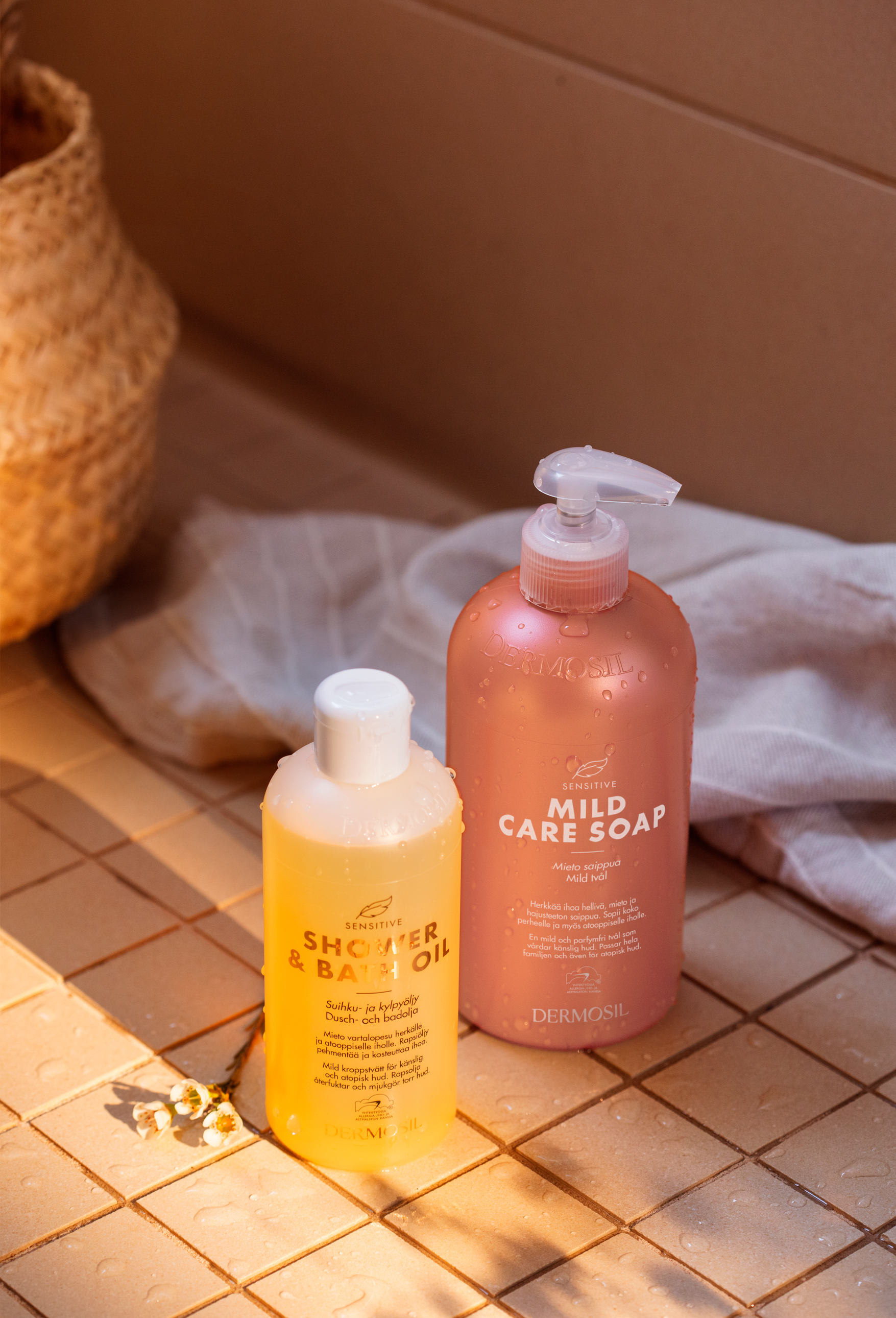 Sensitive Mild tvål är en sulfatfri och oparfymerad tvål som utvecklats speciellt för rengöring av torr, känslig och atopisk hud. Tvålen innehåller inga färgämnen.