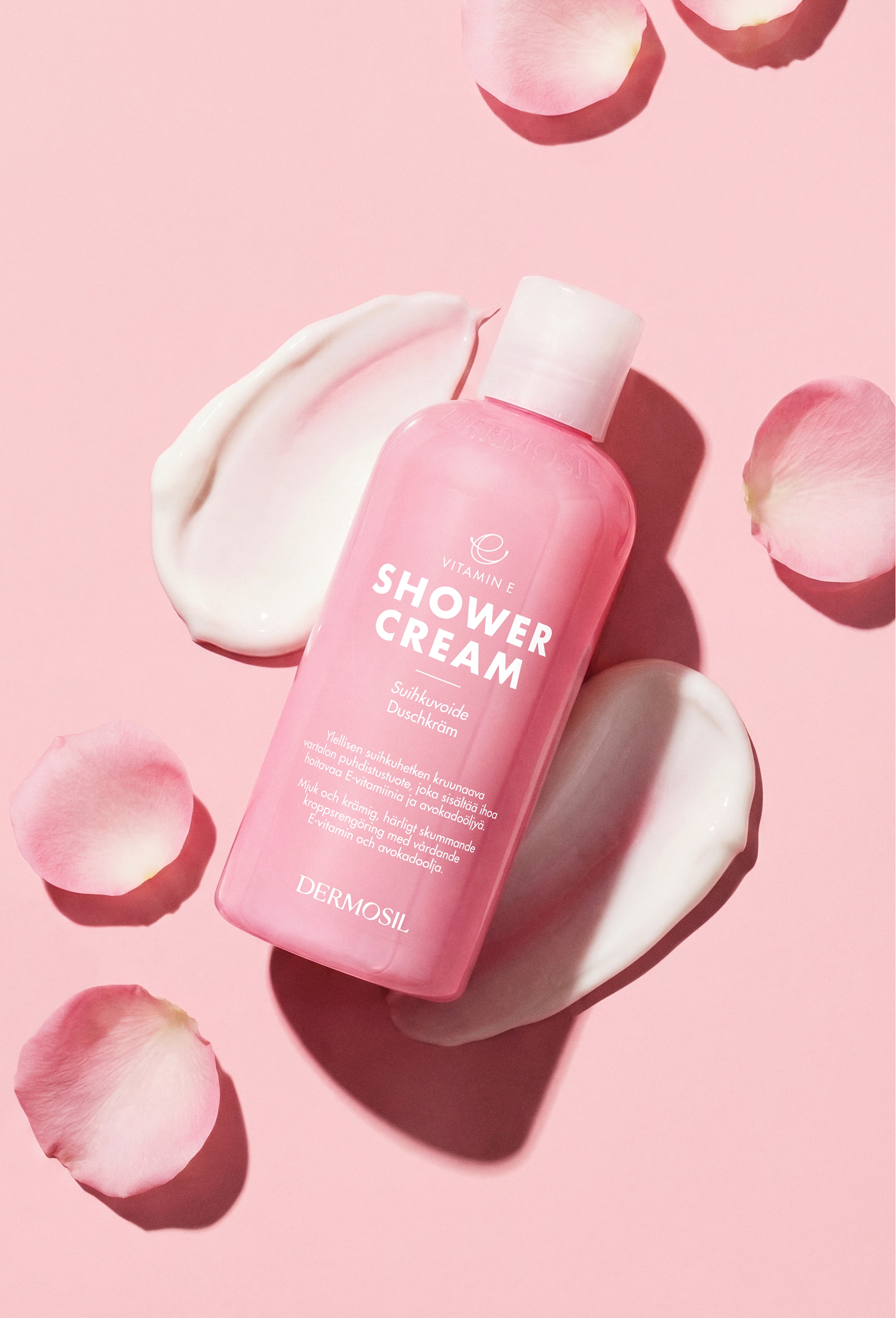 En duschkräm för torr hud rengör huden, vårdar den och håller huden återfuktad. E-vitamin är en viktig antioxidant som vårdar huden och gör den mjuk.