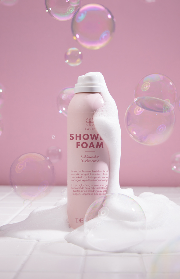 Ta mousse i händerna och massera in på fuktig hud. Skölj bort med vatten.