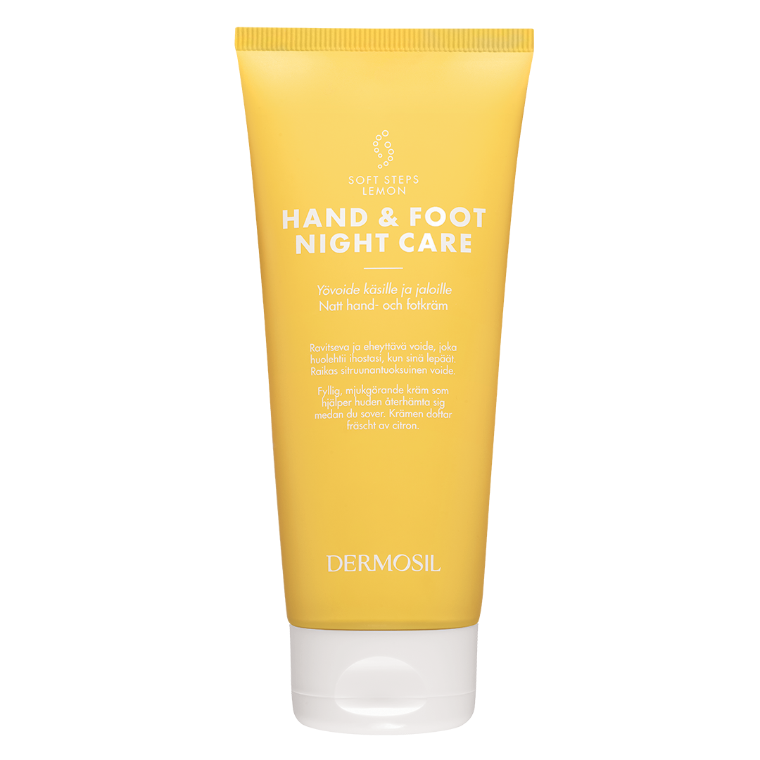 Vårdande nattkräm mjukgör händer och fötter. Frisk citrondoft och återfuktande formula vårdar under natten.