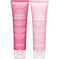 Handskrubb i krämform gör händerna sammetsmjuka i ett nafs. Den effektiva men skonsamma peelingen innehåller fina korn gjorda av ricinolja och kiseldioxid. De peelande kornen avlägsnar varsamt döda hudceller, vilket får hudens yta att förnyas. Detta gör att Vitamin E Handserum, som är avsedd att användas med handskrubb, absorberas bättre i huden.