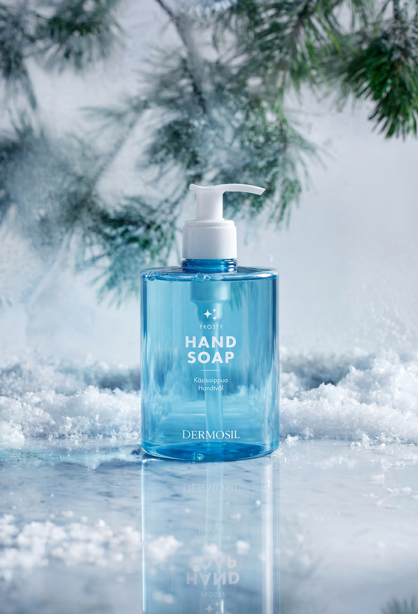 Frosty Handtvål är en sulfatfri handtvål som utvecklats speciellt för rengöring av torr, känslig och atopisk hud. Tvålen innehåller milda rengörande tensider och därför torkar den inte ut huden lika lätt som en vanlig tvål.