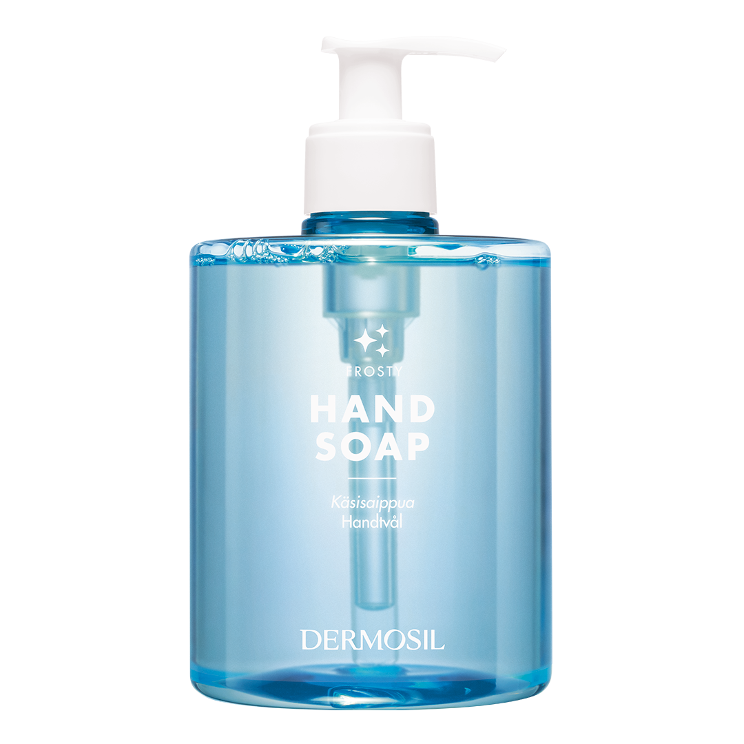 Frosty Handtvål är en sulfatfri handtvål som utvecklats speciellt för rengöring av torr, känslig och atopisk hud. Tvålen innehåller milda rengörande tensider och därför torkar den inte ut huden lika lätt som en vanlig tvål.