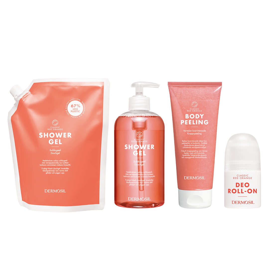 Detta vårdande produktset har en spralligt glad citrusdoft som piggar upp och höjer humöret! Nu kan du njuta av storfavoriten Röd apelsin till förmånligt paketpris.