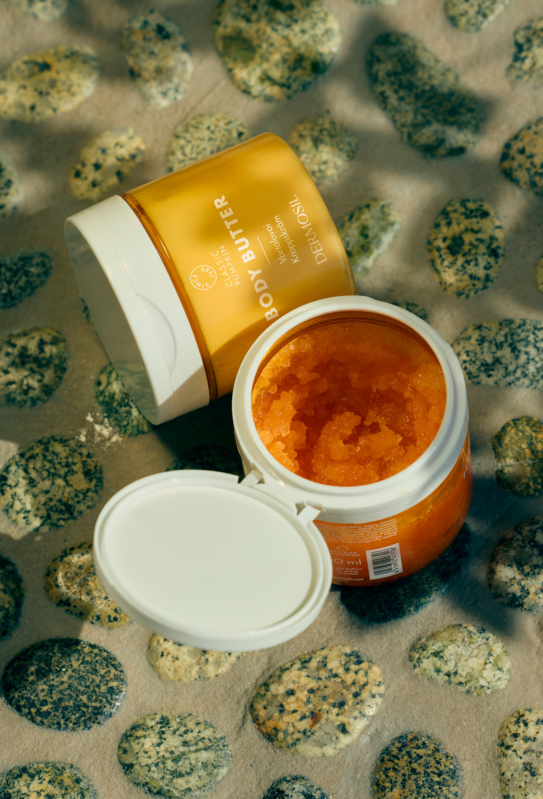 Efter rengöring är huden som mest mottaglig för fukt. Pumpkin Kroppskräm är en fukt- och näringsgivande hudkräm. Den fylliga kroppskrämen innehåller sheasmör, glycerin, pumpaextrakt och cica-extrakt, vilka är antioxidantiska, fuktgivande ingredienser som också hjälper till att minska tecken på åldrande i huden. Ingredienserna har också lugnande egenskaper Kroppskrämen innehåller dessutom pumpaextrakt. Duschgelen och kroppskrämen kompletterar varandra och stöder hudens välmående.