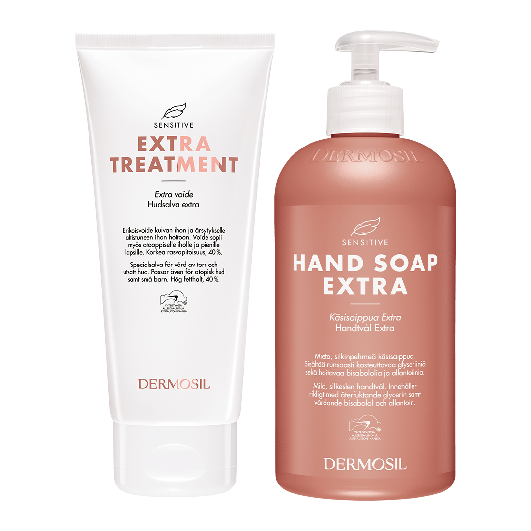 Hudvård för extra känslig hud! Våra skonsamma Sensitive-produkter är allergimärkta och parfymfria och passar även mycket torr eller atopisk hud. En bra bas i hudvårdsrutinen som tryggt kan användas av hela familjen, också spädbarn.