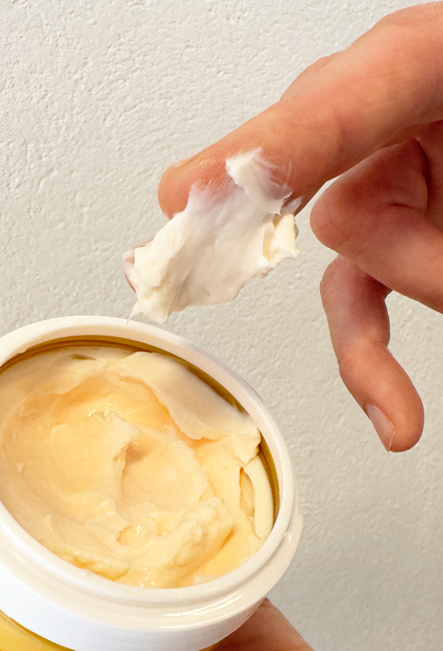Den fylliga kroppskrämen innehåller sheasmör, glycerin, pumpaextrakt och cica-extrakt, vilka är antioxidantiska, fuktgivande ingredienser som också hjälper till att minska tecken på åldrande i huden. Ingredienserna har också lugnande egenskaper. Kroppskrämen innehåller dessutom pumpaextrakt, som är fullspäckat med milt peelande enzymer samt antioxidantisk E-, C- och A-vitamin.