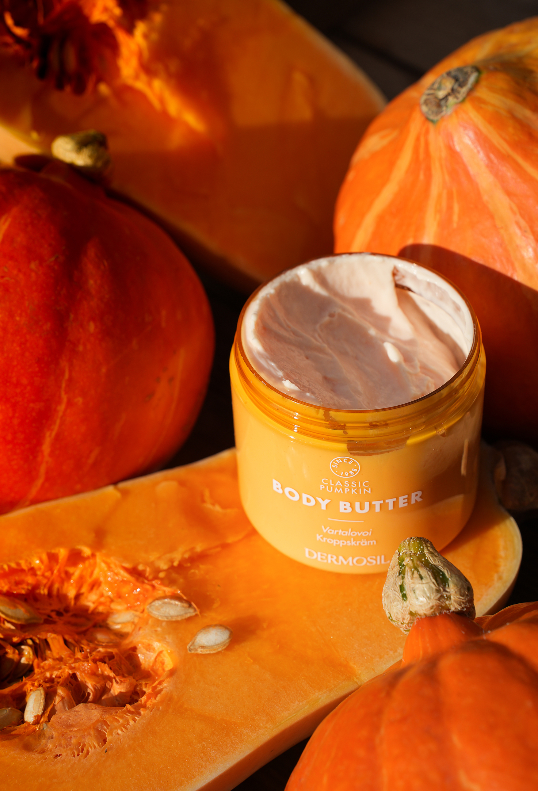 Pumpkin Kroppskräm är en fukt- och näringsgivande hudkräm med kryddig doft av pumpalatte. En intressant nyhet för huden att pigga upp den kalla årstiden med!
