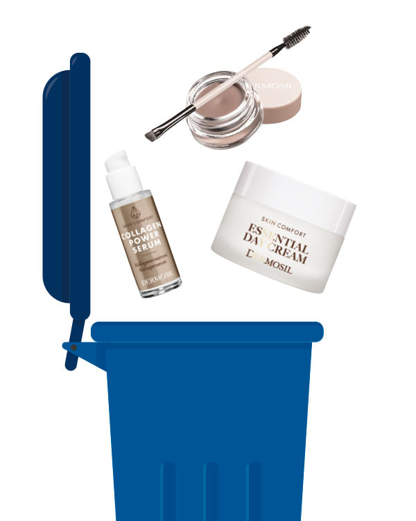 Dermosil-produkterna kommer till dig i en papplåda som sorteras i pappinsamlingen. Även pappaskar, som vissa av produkterna kommer i, hör till pappinsamlingen. Nuförtiden är en stor del av våra sminkprodukter förpackade i papp- eller pappersförpackningar, som också kan läggas i pappinsamlingen.