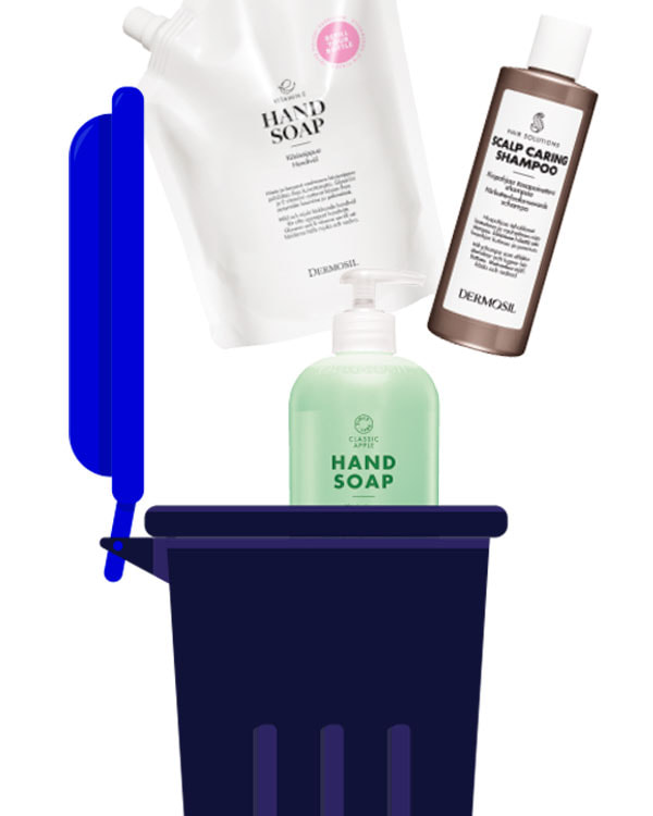 Vi på Dermosil ser till att våra produkter är tillverkade och förpackade så smart som möjligt med tanke på miljön. Genom att välja ansvarsfullt tillverkade produkter, genom att använda refillpåsar och genom att sköta om återvinningen av produkterna drar du ditt strå till stacken för miljöns bästa. Läs mera nedan hur du kan återvinna dina Dermosil-förpackningar på bästa sätt.