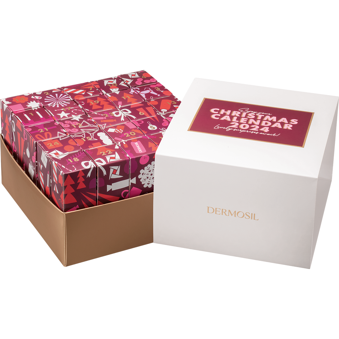 I Dermosils julkalender med hudvård och smink finns sammanlagt 25 luckor: 24 luckor för produkter och en för en extra överraskning. Varje lucka är en liten låda som efter att den öppnats kan vändas bakfram, vilket gör att kalendern får ett nytt mönster. Julkalendern kan lätt återanvändas!