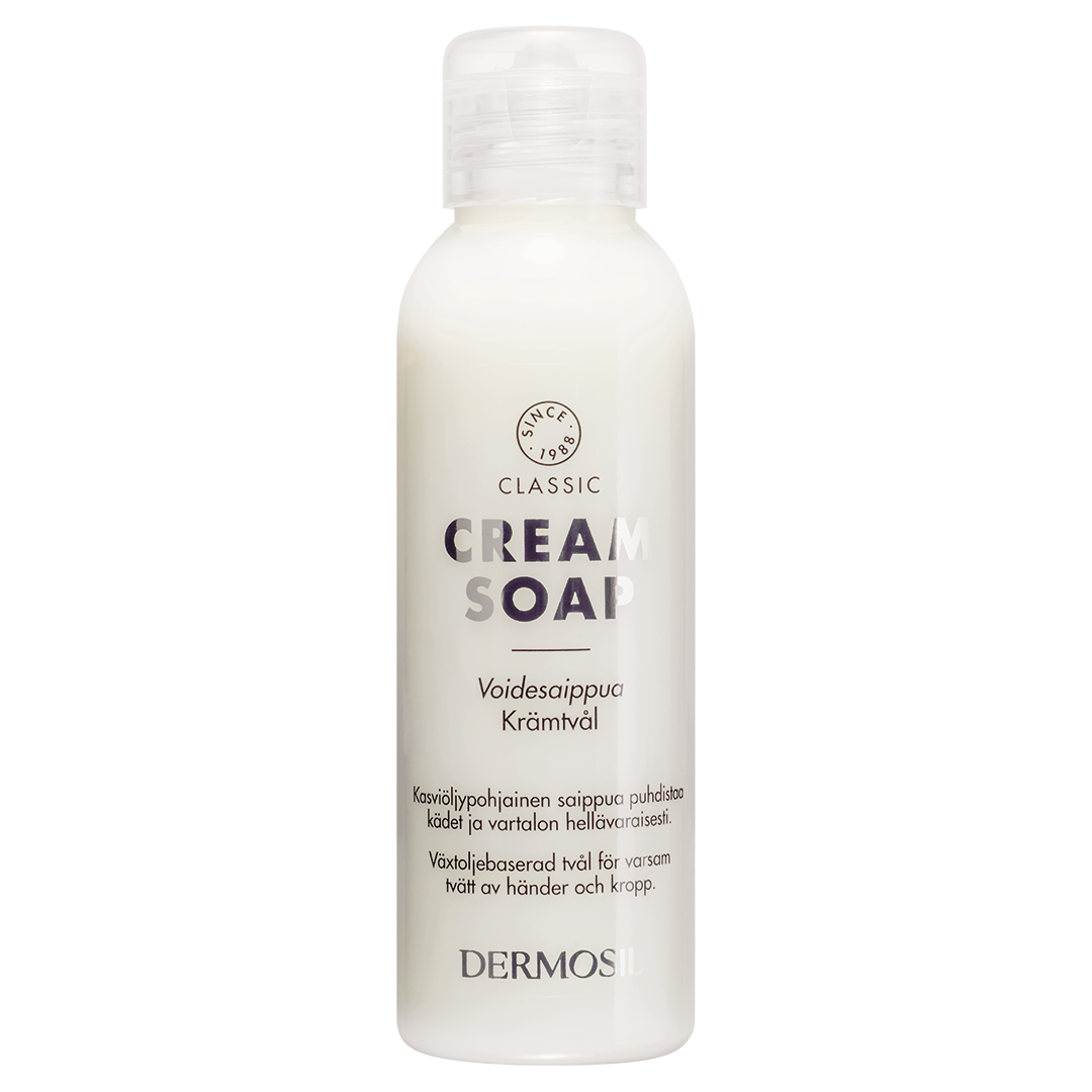 Krämtvålen är sammansatt för att bibehålla balansen mellan fett och fukt i huden. Tvålen tillför din hud just så mycket fett att den inte torkar ut. Du kan tvätta dig så ofta du vill - ansikte, händer, kropp - och huden behåller ändå sin naturliga fett- och fukthalt.