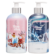 Julduschgelen har en söt och kryddig doft av vinteräpplen med en nypa körsbärsblommor. Flaskan pryds av en vacker jultomtsillustration.
