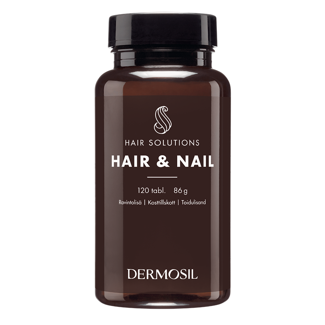 Dermosil Hår och naglar är ett vitamin-, mineral- och aminosyrapreparat speciellt utvecklat för att stärka svaga naglar och sprött hår. Stress, för mycket sol och hård styling sliter på håret. Naglarna lider av såväl torka, kyla som näringsbrist.