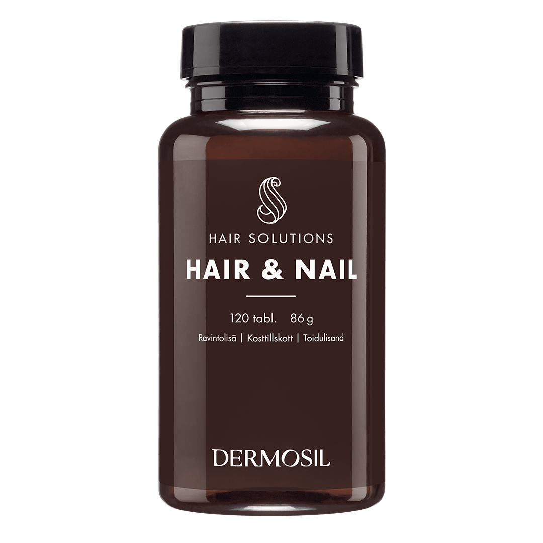 Dermosil Hår och naglar är ett vitamin-, mineral- och aminosyrapreparat speciellt utvecklat för att stärka svaga naglar och sprött hår. Stress, för mycket sol och hård styling sliter på håret. Naglarna lider av såväl torka, kyla som näringsbrist.