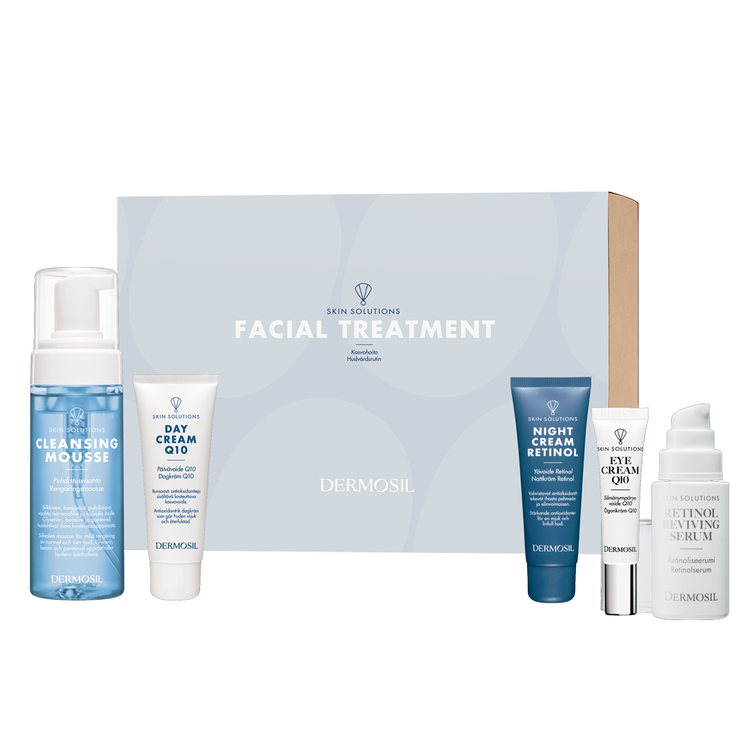 Ansiktsvårdssetet innehåller alla de produkter du behöver både för din morgon- och för din kvällsrutin.