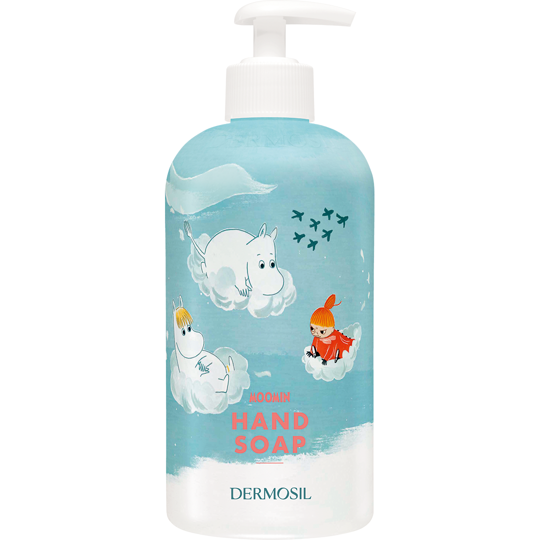 Mjukt skummande Mumin Handtvål rengör händerna skonsamt och effektivt. Handtvålen innehåller vårdande, finländsk betain som håller händerna mjuka och återfuktade. Tvålen har en mild, fruktig och bärig doft.