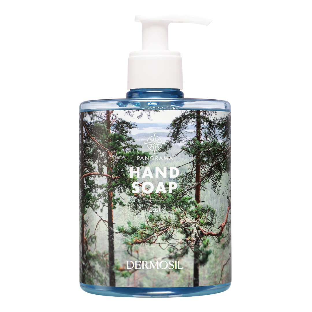 Vi har tappat en bit på flaska av det vackraste som Östra Finland kan erbjuda. Panorama East handtvålen pryds av en härlig skogsvy från Neitvuori i Södra Savolax. Tvålen tvättar skonsamt händerna rena och förtjusar med sin pigga och fruktiga doft. Doften bär nyanser av nordiska bär såsom hjortron, hallon samt svarta och röda vinbär.