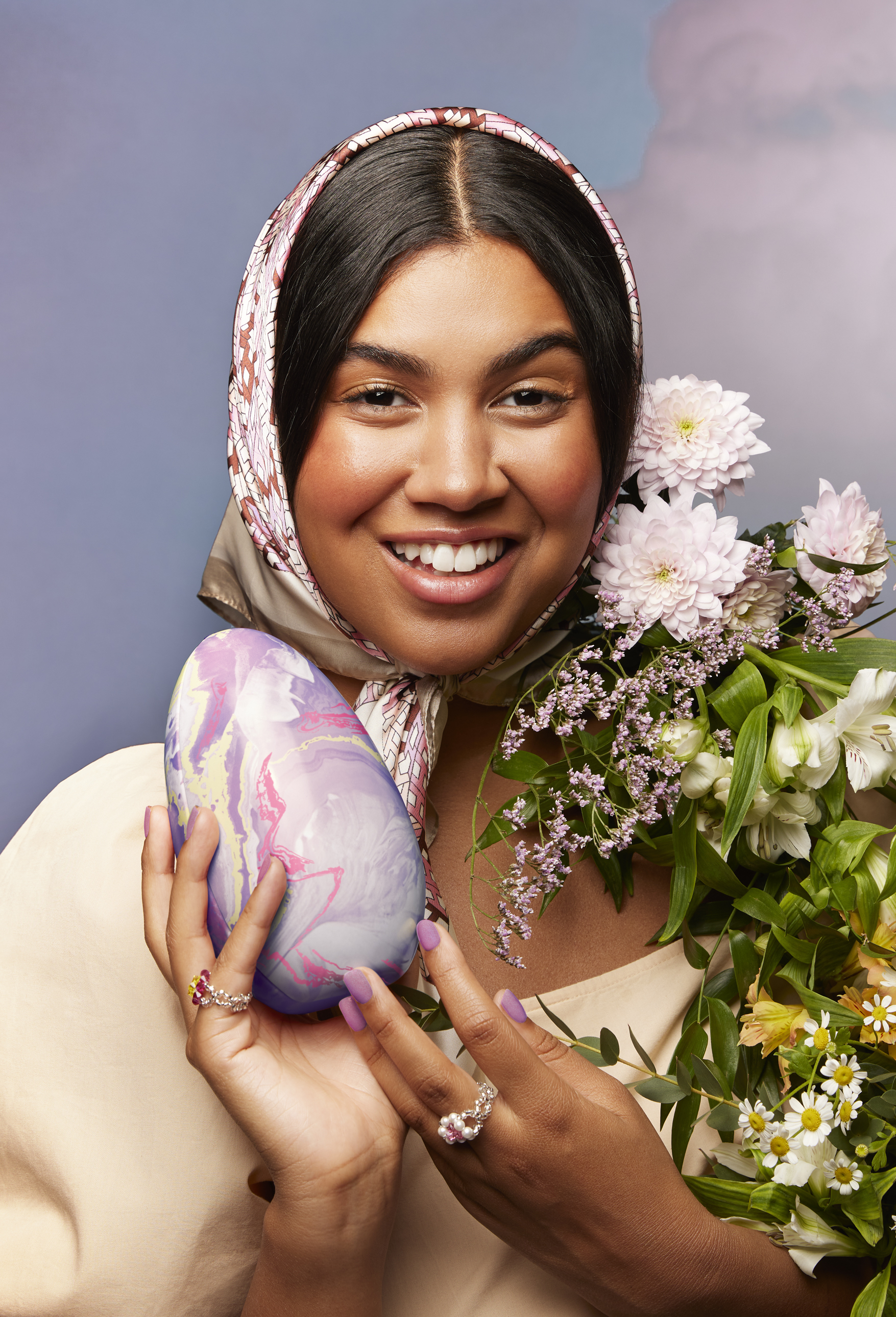 Påskägg Bright Eyes innehåller allt du behöver för att skapa en strålande ögonlook. Förpackningen är formad som ett ägg som pryds av en vacker marmorering med lila, rosa och ljusgula nyanser – en sötare present får man leta efter!